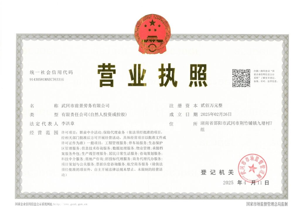 公司简介: 武冈市前景劳务公司成立于2025年2月,是一家综合性服务企业,业务涵盖职业中介、保险代理、工程管理、停车场服务、生态保护区管理、信息技术咨询、数据处理、物业管理、劳务派遣以及城市生活垃圾经营性服务等多元领域。公司通过专业的职业顾问团队,为求职者与用人单位提供精准匹配与推荐服务,助力就业与招聘;同时开展劳务派遣业务,为企业提供灵活的人力资源配置解决方案,满足不同用工需求。在保险代理方面,公司与多家知名保险公司合作,为客户提供个性化保险方案设计及理赔协助,保障客户经济利益。工程管理服务凭借专业团队提供从项目策划到竣工验收的全方位支持,确保工程质量与进度。停车场服务采用智能化管理系统,配备安保人员,保障车辆安全,优化停车体验。生态保护区管理服务聚焦自然资源保护与生态修复,提升公众环保意识。信息技术与数据处理服务助力企业数字化转型,提供信息化建设咨询与数据处理支持。物业管理服务涵盖住宅、商业及工业园区,以精细化管理为业主创造舒适环境。此外,公司还提供城市生活垃圾经营性服务,规范垃圾收集、运输与处理流程,助力城市环境整洁与可持续发展。公司秉持“专业、高效、创新、共赢”的理念,致力于成为区域内最具影响力的服务企业,为客户创造价值,推动社会经济发展。